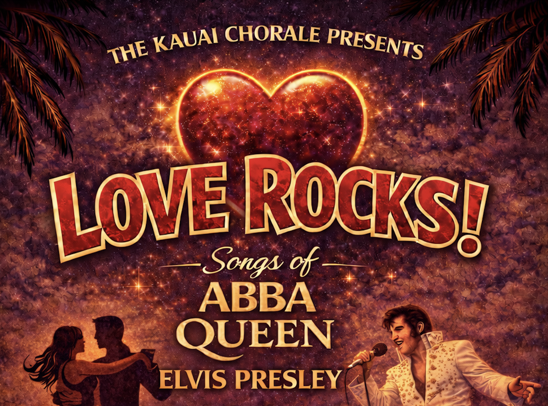 Join Kaua‘i Chorale for Love Rocks!, a vibrant concert celebration filled with energy, heart, and unforgettable music. Featuring favorite rock and pop-inspired selections, this lively performance will showcase the joy of singing, the power of community, and the spirit of love in all its many forms.